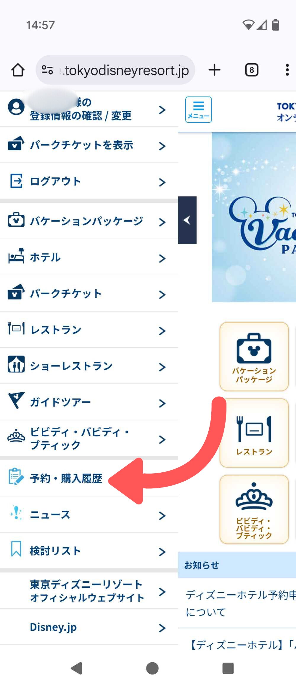 「東京ディズニーリゾート・オンライン予約・購入サイト」からホテルを予約したのですが、宿泊予約特典のページはわかりづらかったです。
