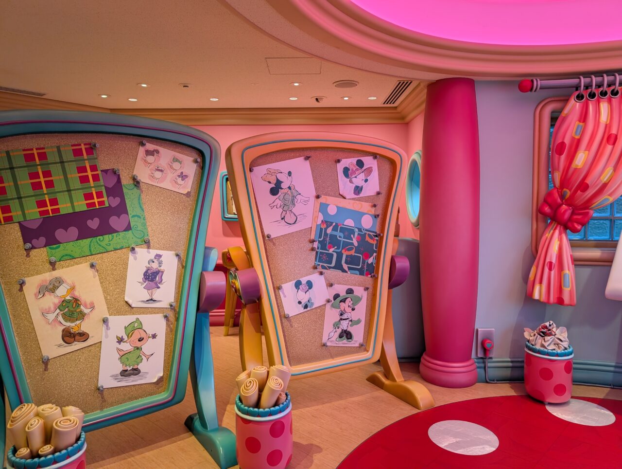 ミニーちゃんと写真を撮りたい!ということで、みんなで並びました。比較的早めに室内に入ることができ、ミニーちゃんのお部屋も楽しんでいました。